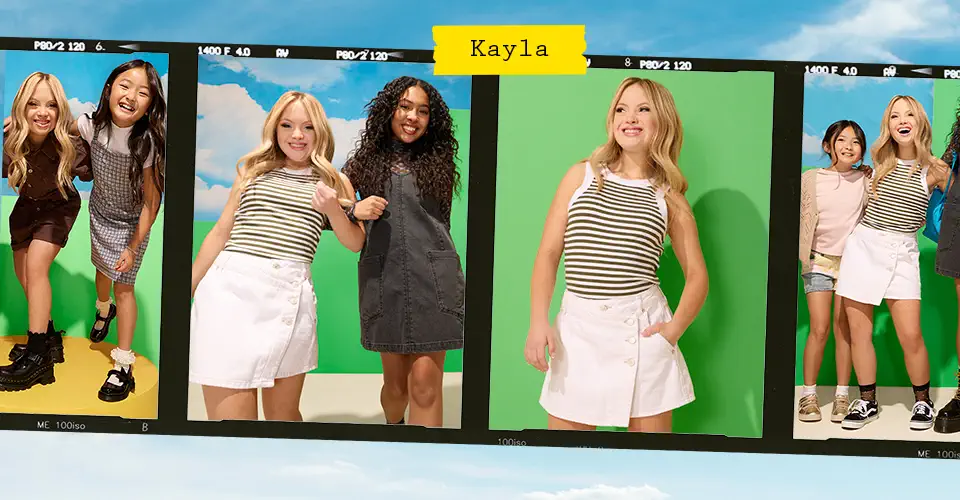 “Hi, I am Kayla Kosmalski...I'm excited to go back to school to wear my sneakers and my yoga pants and crop top. And this makes me feel amazing...I shop where I feel included because representation matters...People with disabilities are the largest minority population in the world and least represented. It is important for people with disabilities to see me in advertising, but it is also important for my typical peers to see someone like me.“