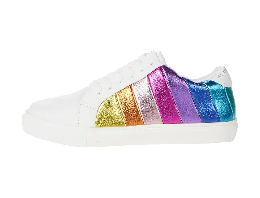 Showcase their adorable personality with cute sneakers boasting bold rainbow stripes.